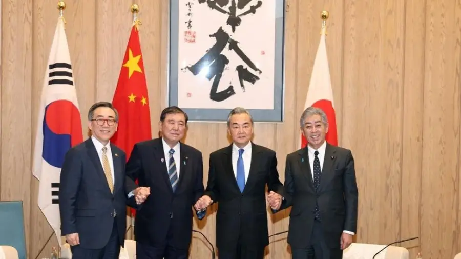 চীন, জাপান ও দক্ষিণ কোরিয়ার মধ্যে সহযোগিতার ভবিষ্যৎ নিয়ে চীন খুব আত্মবিশ্বাসী বলে মন্তব্য করেছেন চীনের পররাষ্ট্রমন্ত্রী ওয়াং ই। শুক্রবার জাপানের রাজধানী টোকিওতে জাপানের প্রধানমন্ত্রী ইশিবা শিগেরুর সঙ্গে চীন, জাপান ও দক্ষিণ কোরিয়ার পররাষ্ট্রমন্ত্রীদের বৈঠকে এই মন্তব্য করেন তিনি।