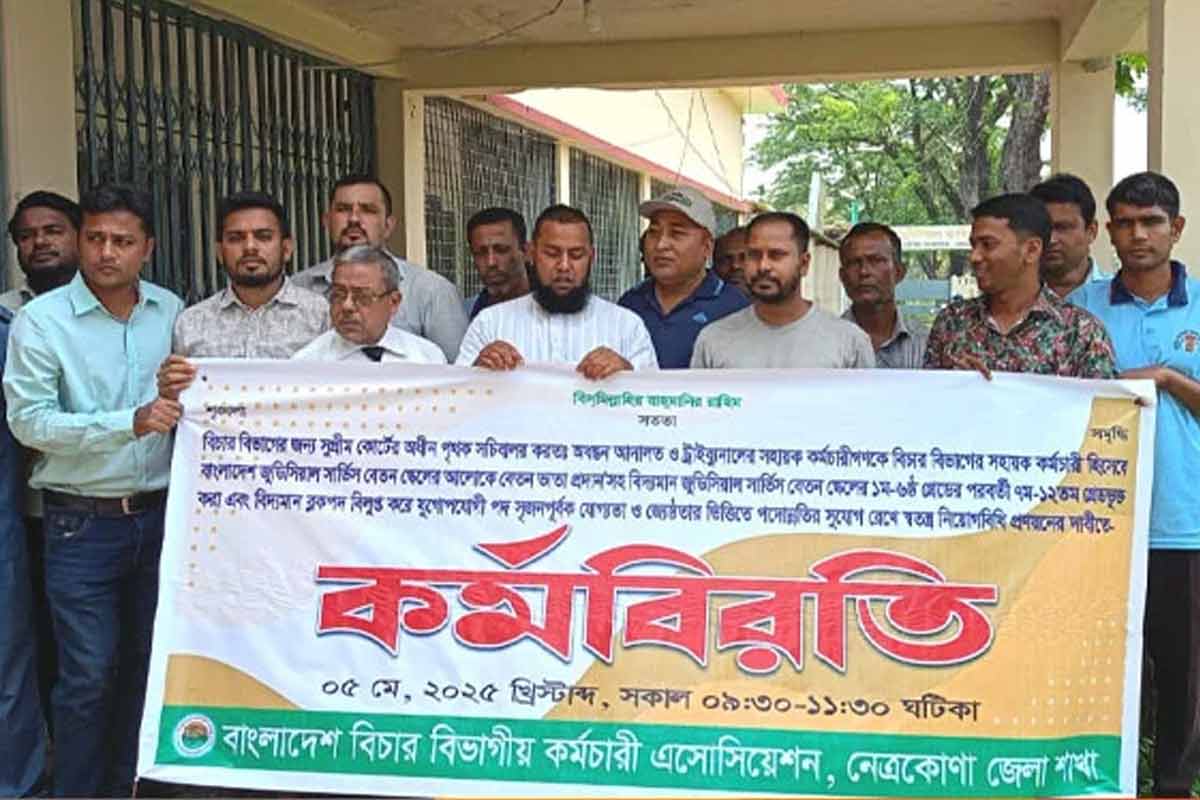 নেত্রকোনার দুর্গাপুরে বিচার বিভাগীয় কর্মচারীদের কর্মবিরতি
