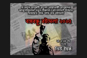 আসলাম আহমাদ খান, নিউ ইয়র্ক, ৯ মে ২০২৫: বাংলা সাহিত্য ও সংস্কৃতির অন্যতম প্রাণকেন্দ্র নিউ ইয়র্কে আগামী ২৪ ও ২৫ মে অনুষ্ঠিত হতে যাচ্ছে প্রথম বঙ্গবন্ধু বইমেলা। ‘একাত্তরের প্রহরী’ নামের মুক্তিযুদ্ধের চেতনায় বিশ্বাসী একটি সামাজিক ও সাংস্কৃতিক সংগঠনের উদ্যোগে এ মেলা অনুষ্ঠিত হবে।